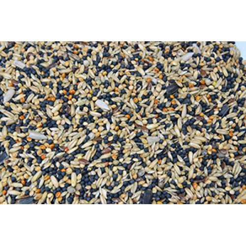 Zloženie: proso žlté,biele,červené, ovos nahý, lesknica, ľan, perilla biela, semená tráv, repka,niger, slnečnica čierna.