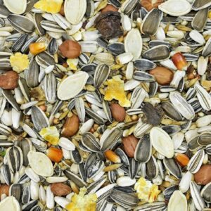 Zloženie: sušené ovocie- banány, papaia, ananás, hrozienka, kokos, burské orechy – lúpané, nelúpané, čili, granule, tekvicové semienka, hrachové a kukuričné vločky, puffovaná pšenica, slnečnica biela, ryža.