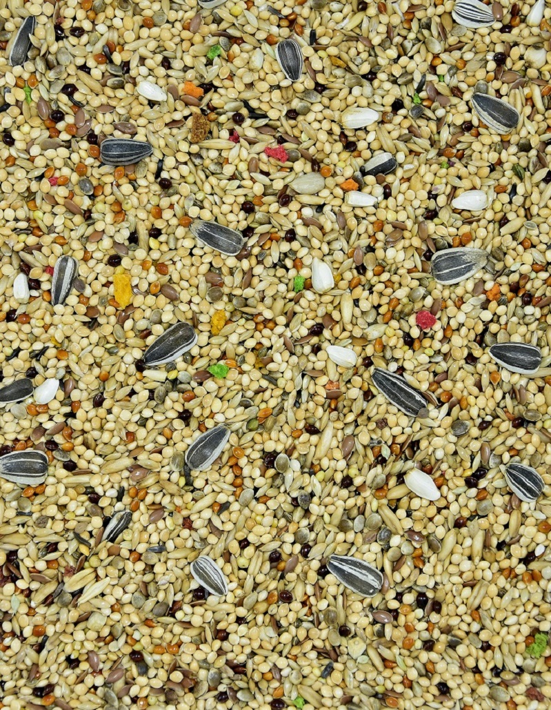 Zloženie: proso žlté, červené, biele, ovos nahý, slnečnica pásikavá, kardi, konope, ľan,niger , vitamín.