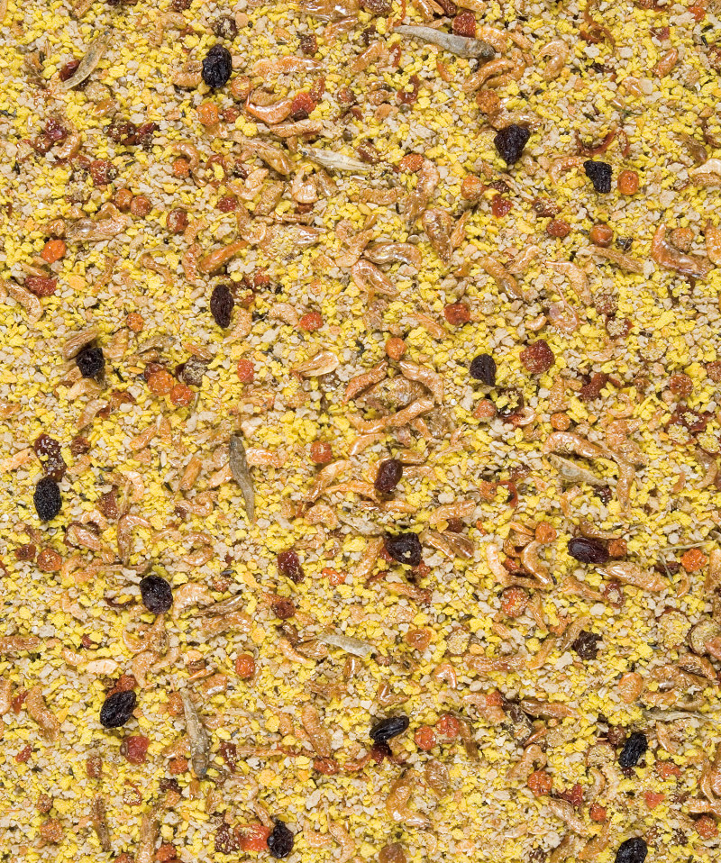 Obohatené o kôrovce (gammarus) ako extra doplnok živočíšnych bielkovín.